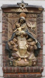 1947 nog een tympaan aan toevoegde. De plaat werd aangebracht door aannemer H. Meese, die eveneens de bakstenen omlijsting van veldovenstenen in natuurlijke kleur metselde.
